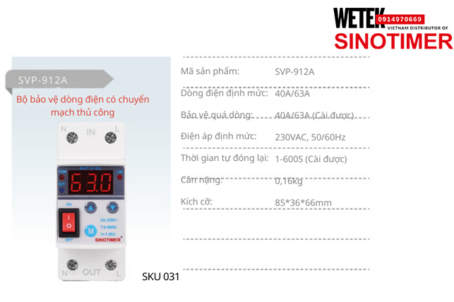 (SKU 031) SVP-912A 40A/63A bảo vệ Quá dòng Sinotimer