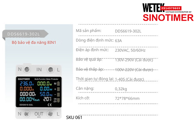 (SKU 061) DDS6619-302L 63A bảo vệ Quá áp Thấp áp Sinotimer