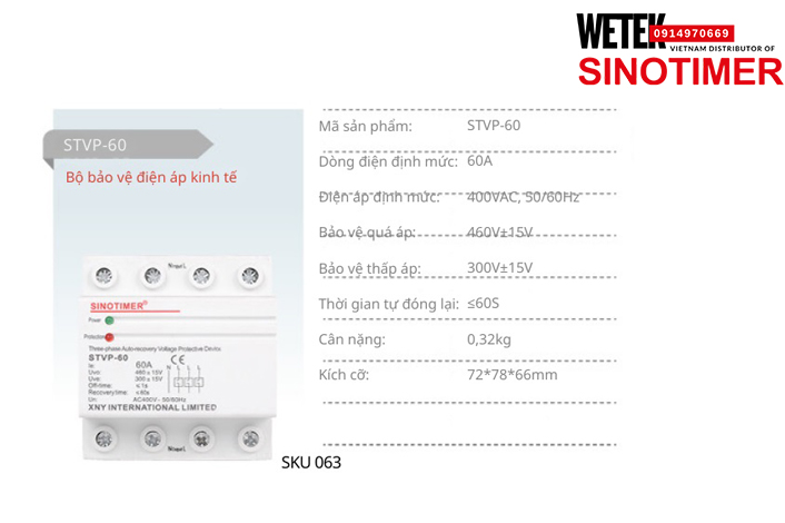 (SKU 063) STVP-60 60A bảo vệ Quá áp Thấp áp Sinotimer