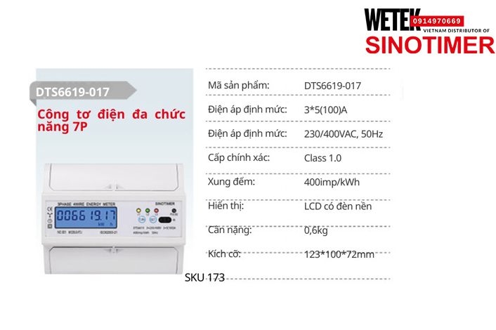 (SKU 173) DTS6619-017 Công tơ điện 3*5(100)A 230/400VAC, 50Hz Sinotimer