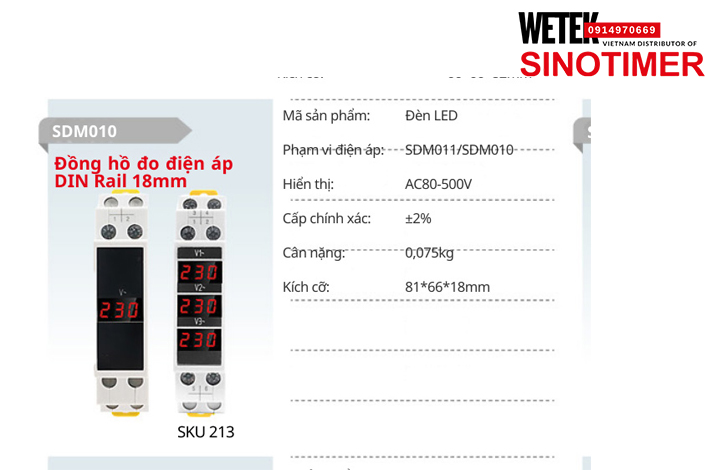 (SKU 213) SDM011/SDM010 Đồng hồ điện AC80-500V Đèn LED Sinotimer