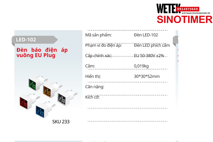 (SKU 233) Đèn LED-102 Đồng hồ điện 50-380V ±2% Sinotimer